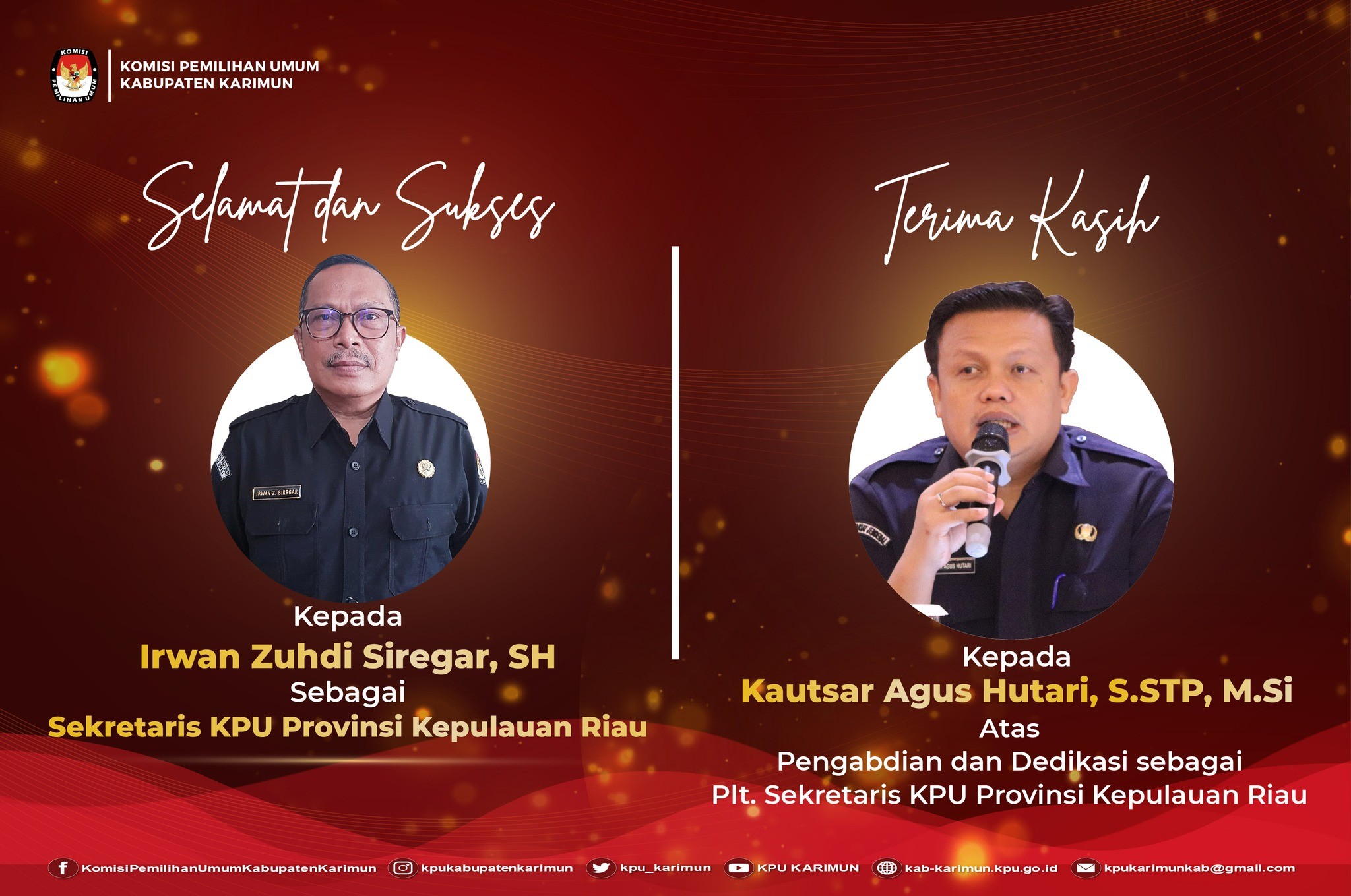 KPU KABUPATEN KARIMUN : Komisi Pemilihan Umum Kabupaten Karimun mengucapkan Selamat kepada Bapak Irwan Zuhdi Siregar sebagai Sekretaris Komisi Pemilihan Umum Provinsi Kepulauan Riau,